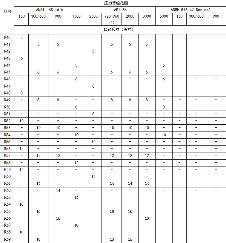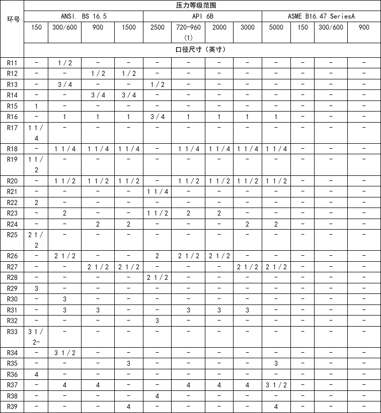 R型墊片的制造符合API 6A、6B和ASME b16.20適合API ASME/ANSI B16.5法蘭。在橢圓形和八角形配置,這兩種類型是可互換的現代八角型槽法蘭。